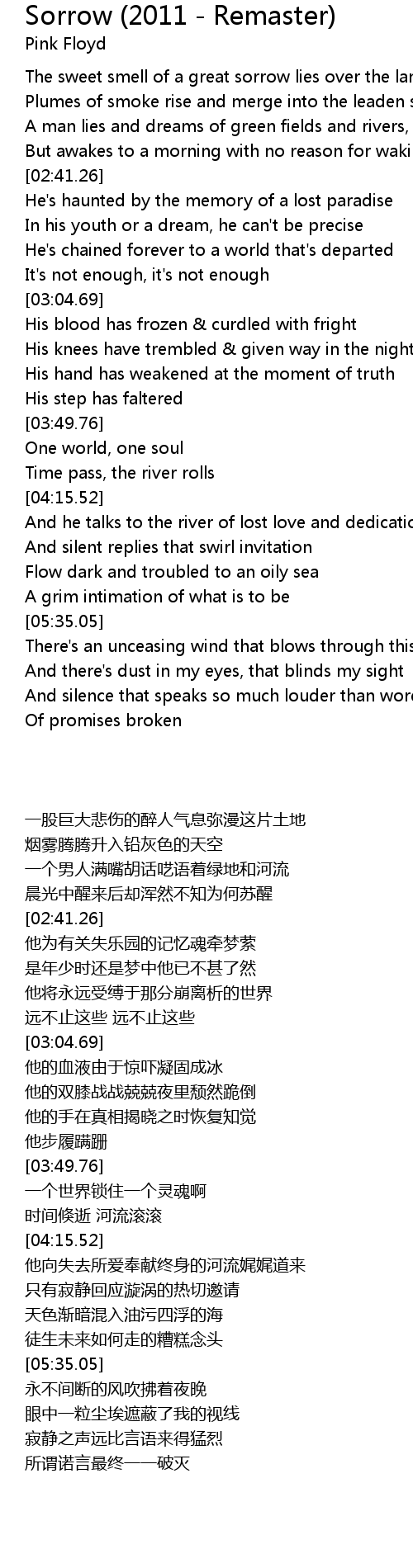 Sorrow (2011 - Remaster) Lyrics