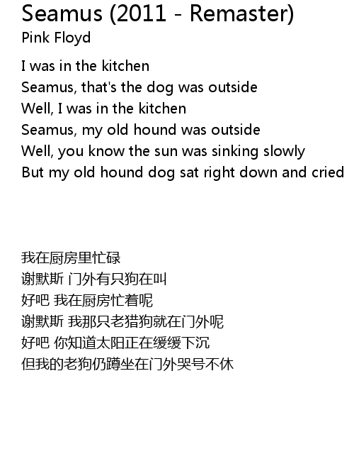 | [00:23.59] | Seamus, my old hound was outside |