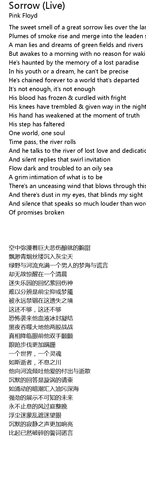 The sweet smell of a great sorrow lies over the land |