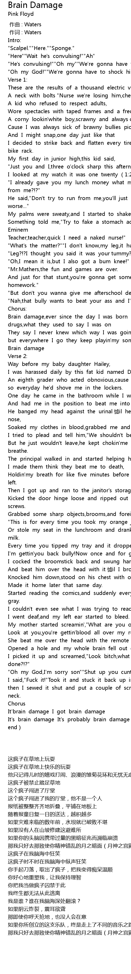 | [00:57.207] | Brain damage,ever since the day I was born |