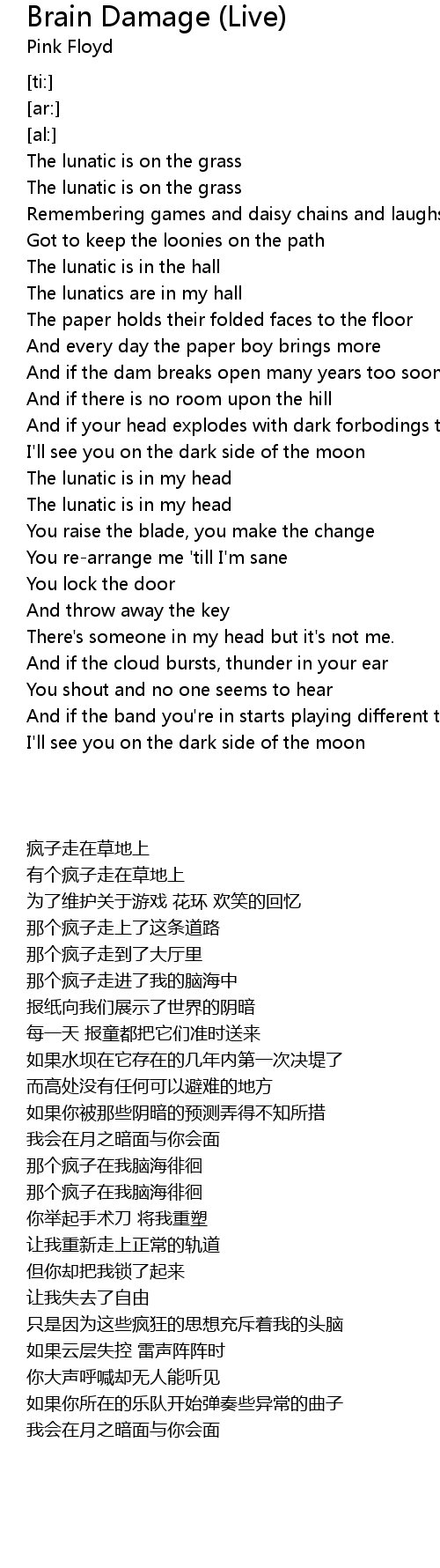 The lunatic is in my head |