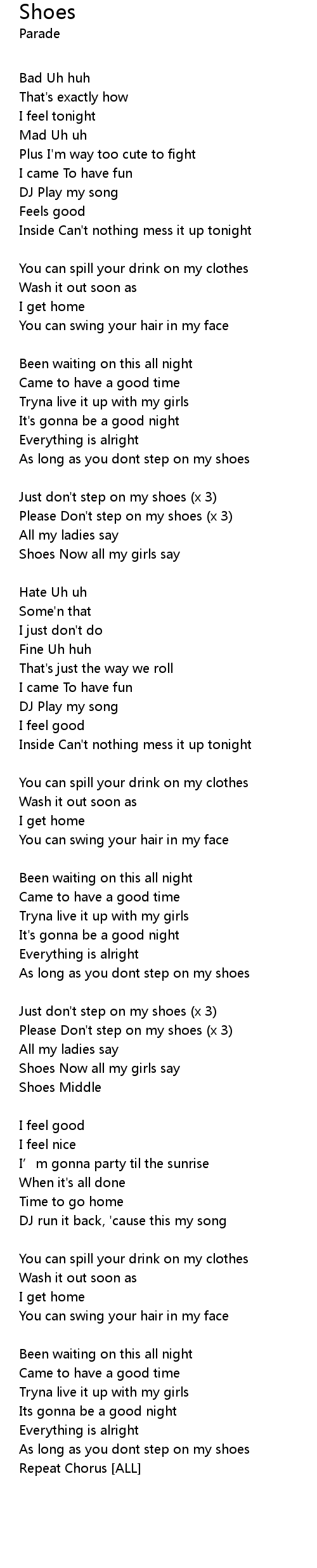| Shoes Now all my girls say | |