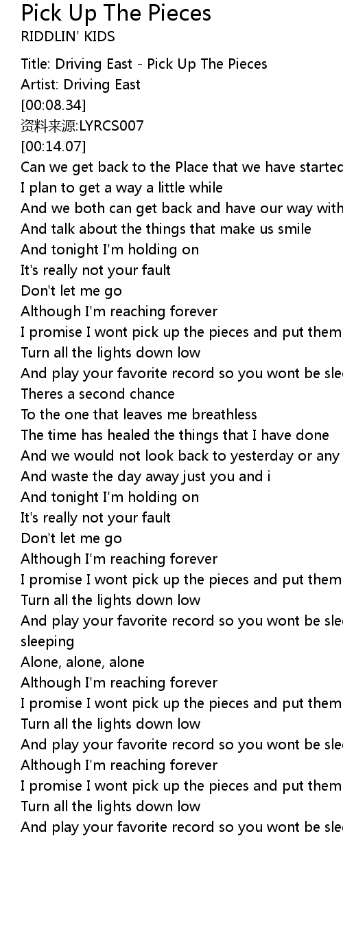 | [00:00.00] | Title: Driving East Pick Up The Pieces |