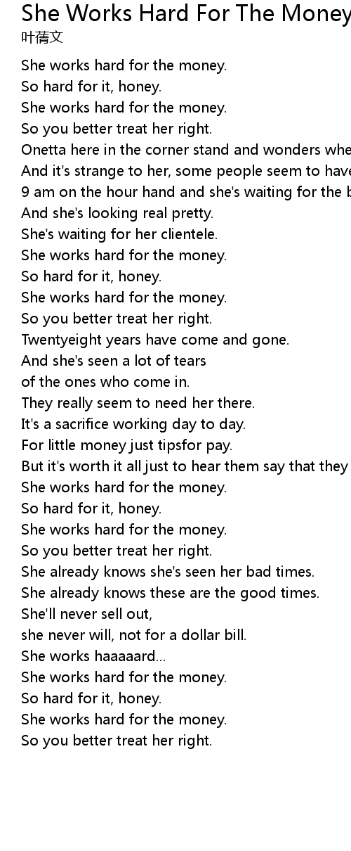 | She works hard for the money. | |