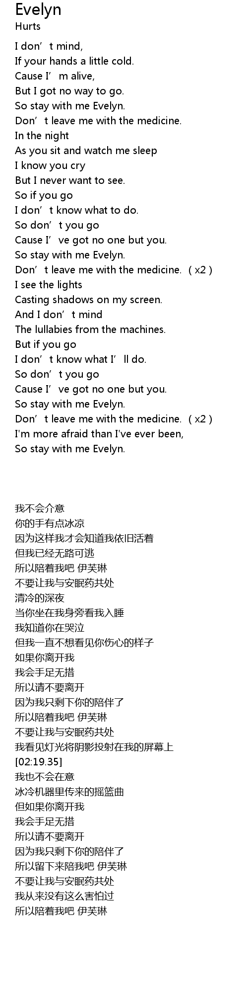 | [02:50.53] | Don' t leave me with the medicine. x2 |