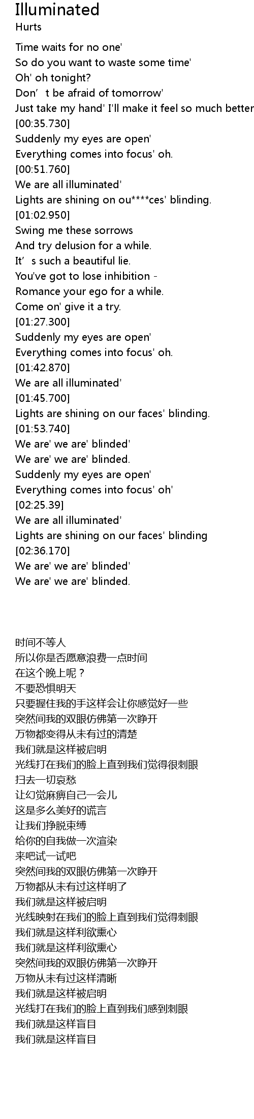 | [00:53.70] | We are all illuminated' |
