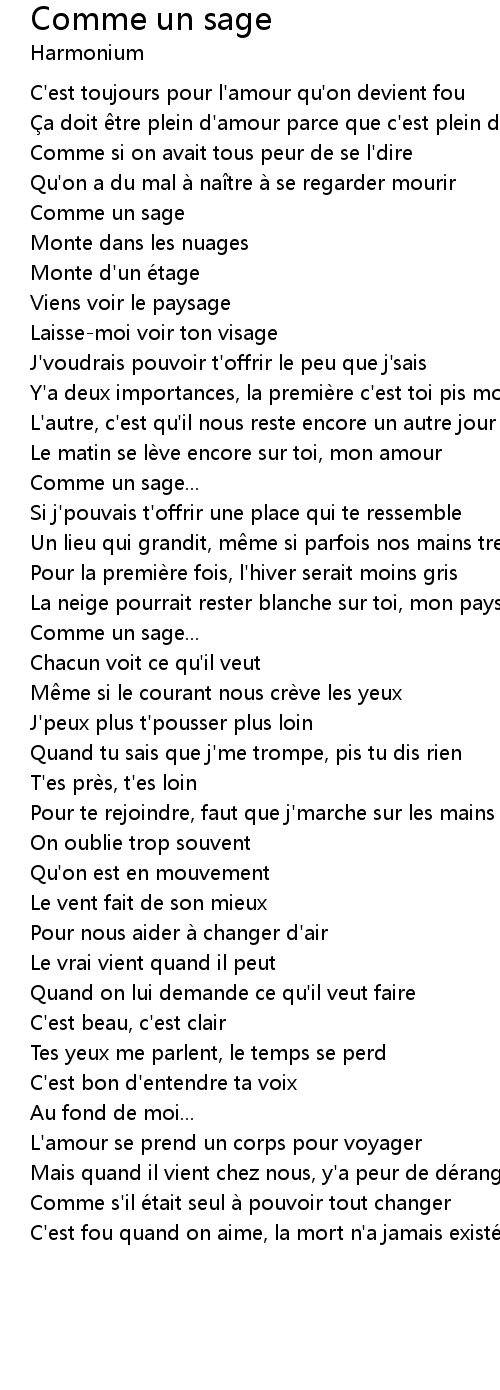 | Song | Comme un sage |