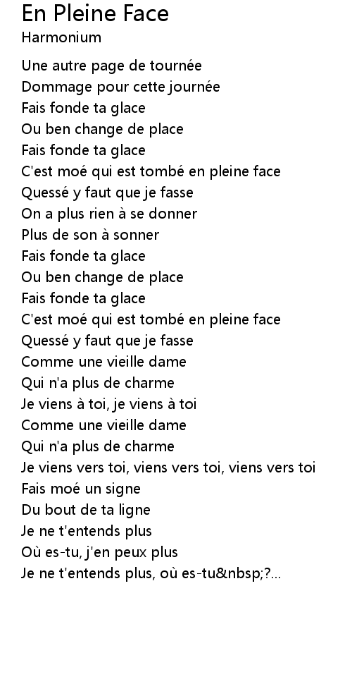 | Song | En Pleine Face |