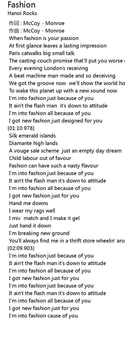 | [01:34.972] | Fashion can have such a nasty flavour |