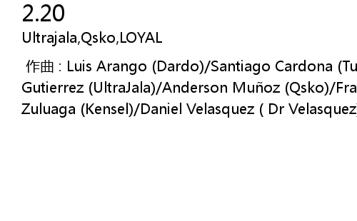 | [00:00.000] | 作曲 : Luis Arango (Dardo)/Santiago Cardona (Turro)/Duvan Gutierrez (UltraJala)/Anderson Muñoz (Qsko)/Francisco Gallego (Loyal)/Mauricio Zuluaga (Kensel)/Daniel Velasquez ( Dr Velasquez) |