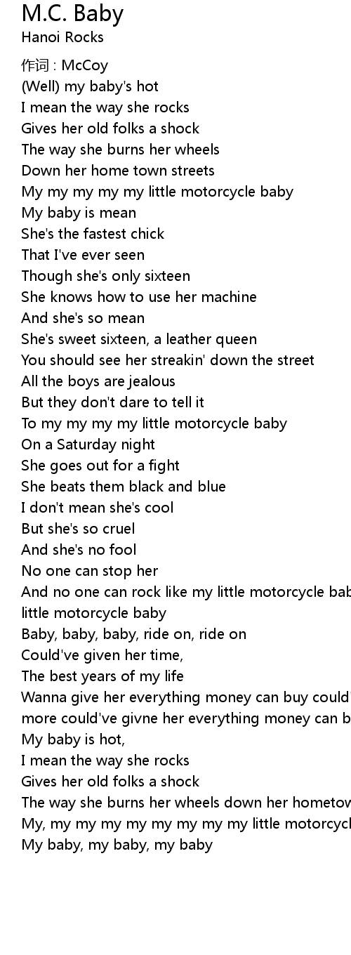 | And no one can rock like my little motorcycle baby my little motorcycle baby my little motorcycle baby | |