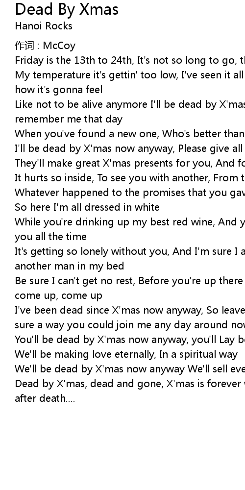 | Dead by X' mas, dead and gone, X' mas is forever we got a life to live, a life after death.... |