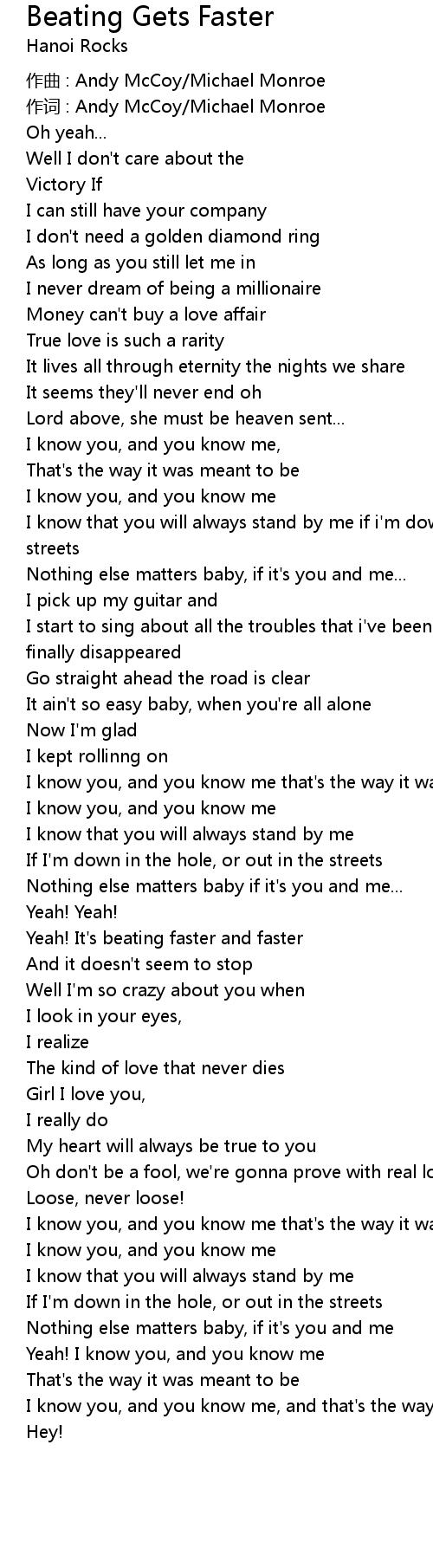 | Song | Beating Gets Faster |