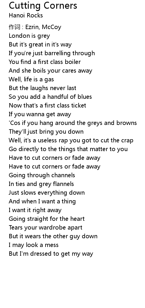 | Song | Cutting Corners |
