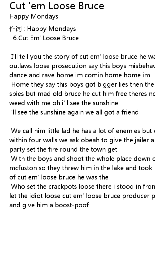 | I' ll tell you the story of cut em' loose bruce he was the man who set the outlaws loose prosecution say this boys misbehaven he shoot for fun do pussy, dance and rave home im comin home home im | |