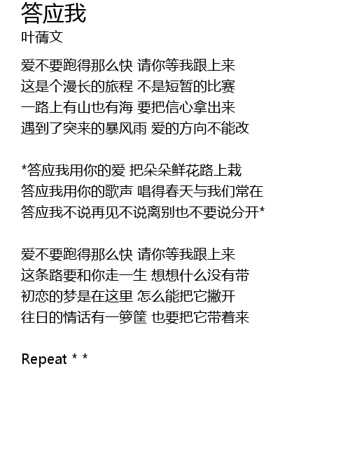 | *答应我用你的爱 把朵朵鲜花路上栽 | |