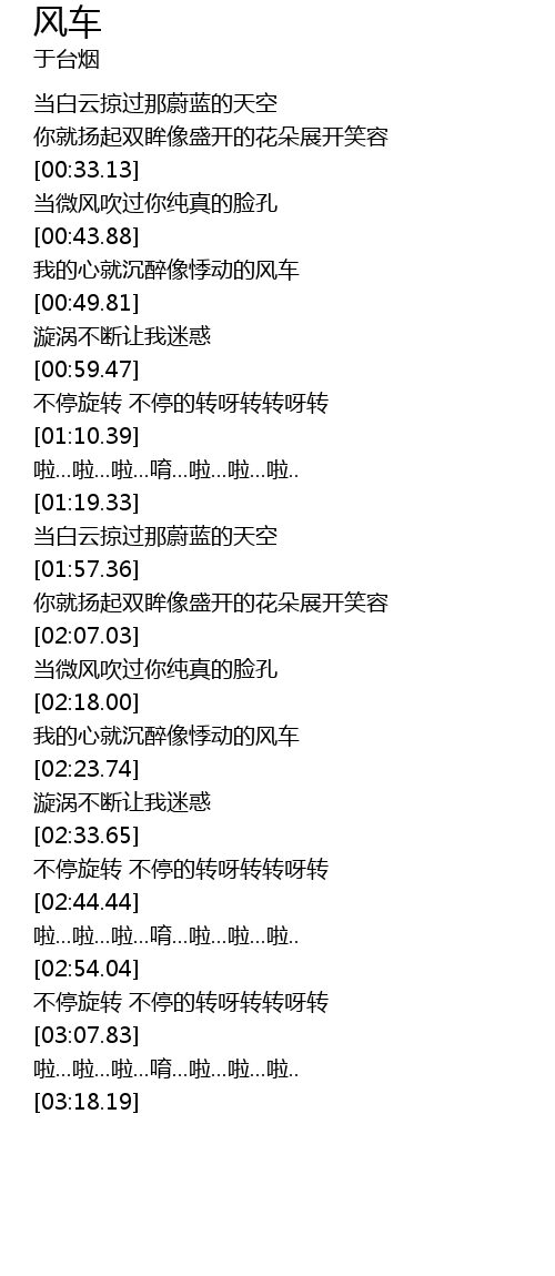 | [02:13.37] | 当微风吹过你纯真的脸孔 |