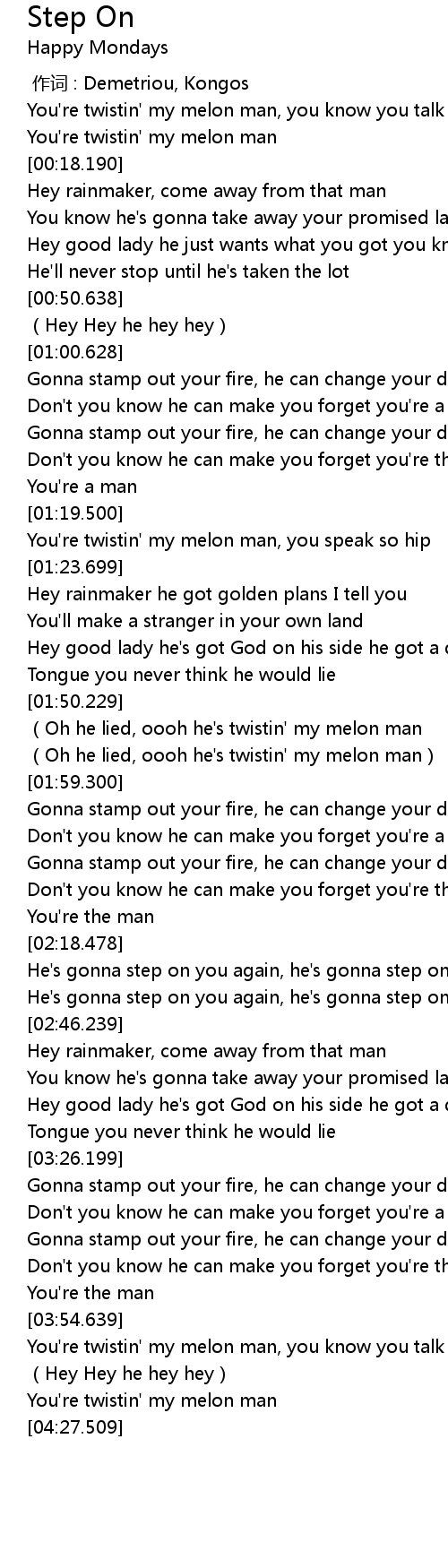 | [02:37.179] | He' s gonna step on you again, he' s gonna step on you |