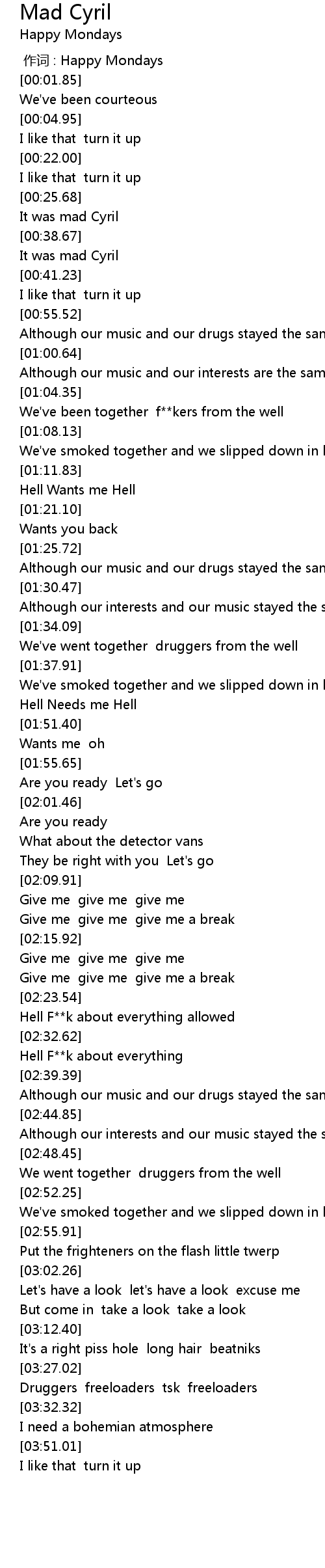 | [03:22.08] | It' s a right piss hole long hair beatniks |