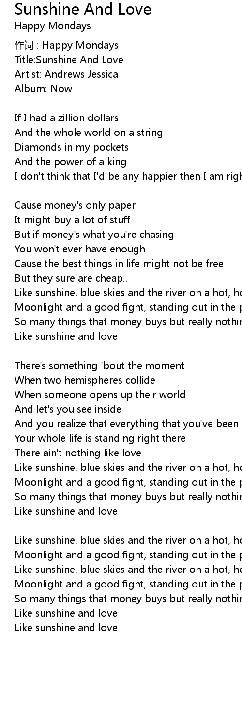 | Like sunshine and love |