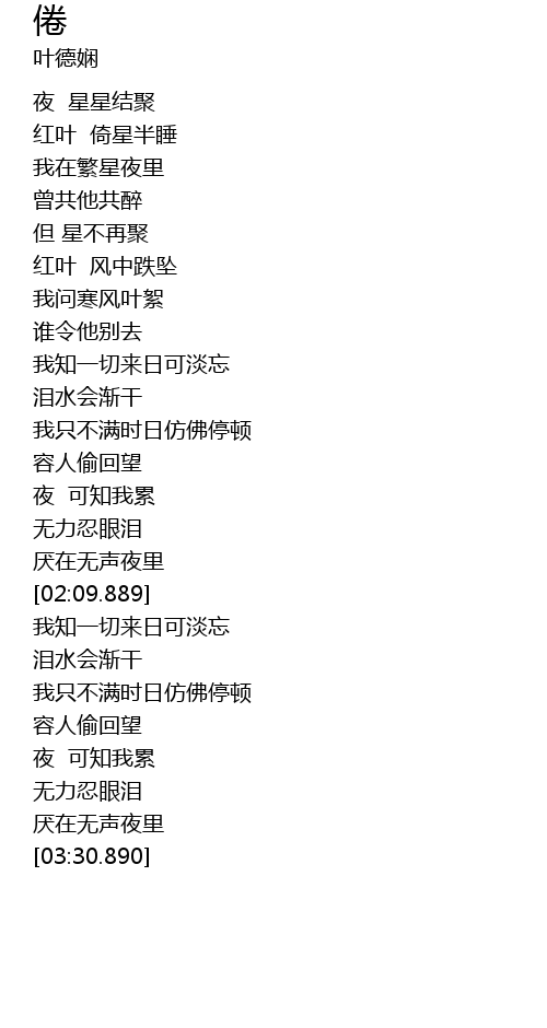 | [00:28.890] | 红叶 倚星半睡 |