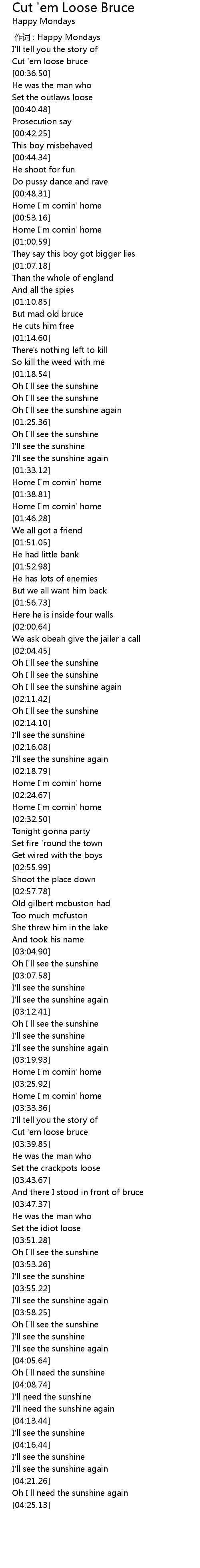 | [00:35.52] | Cut 'em loose bruce |