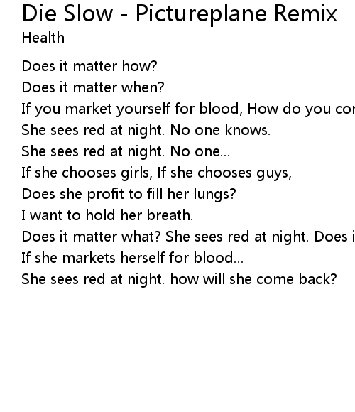 | Does it matter what? She sees red at night. Does it matter where? No one knows. If she markets herself for blood... | |