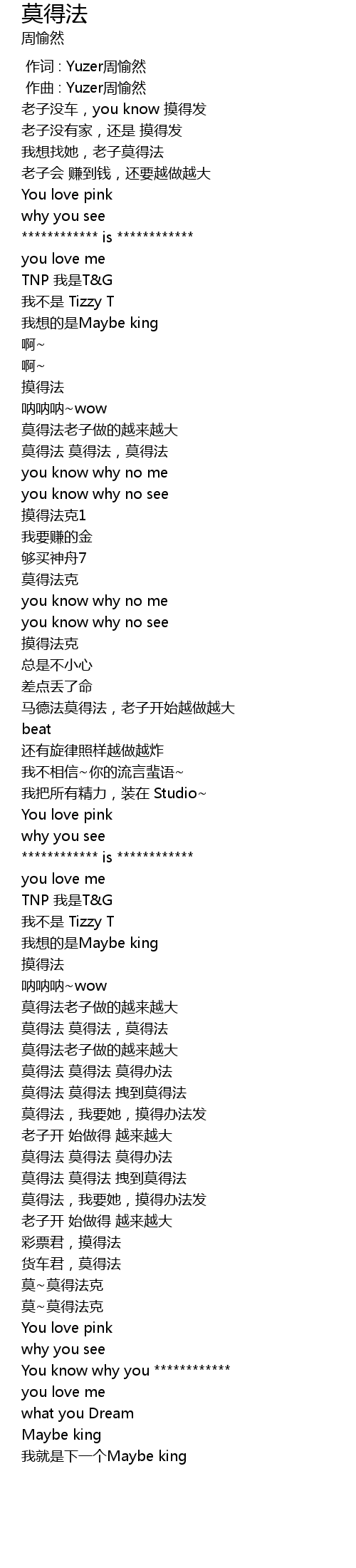 | [02:15.087] | 莫得法 莫得法 拽到莫得法 |