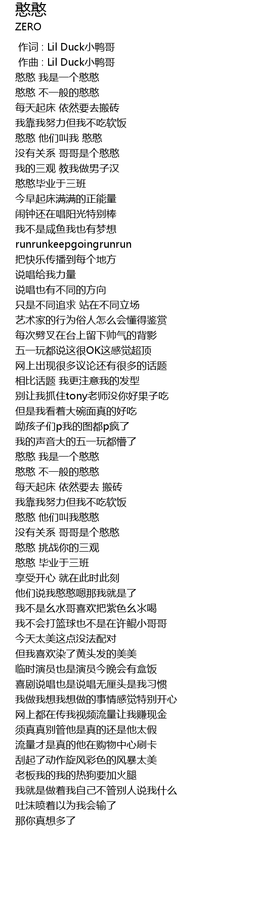 | [00:01.000] | zuò qǔ : Lil Duck xiǎo yā gē |