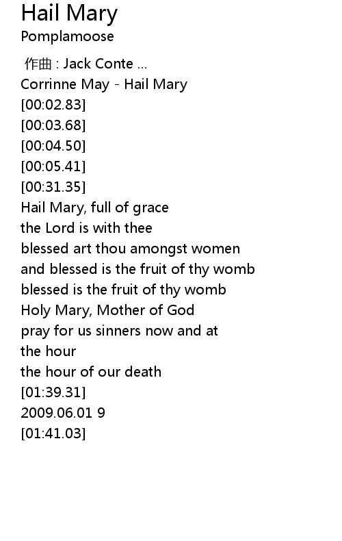 | [00:55.66] | and blessed is the fruit of thy womb |