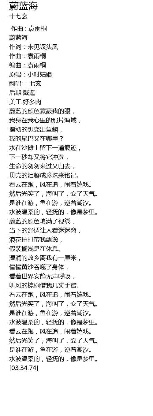 | [00:13.19] | 蔚蓝的颜色蒙蔽我的眼, |