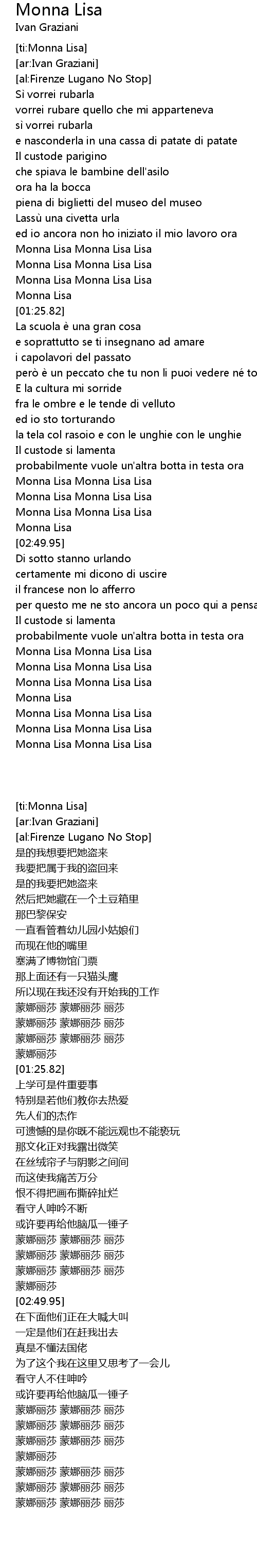 | [02:32.64] | Monna Lisa Monna Lisa Lisa |