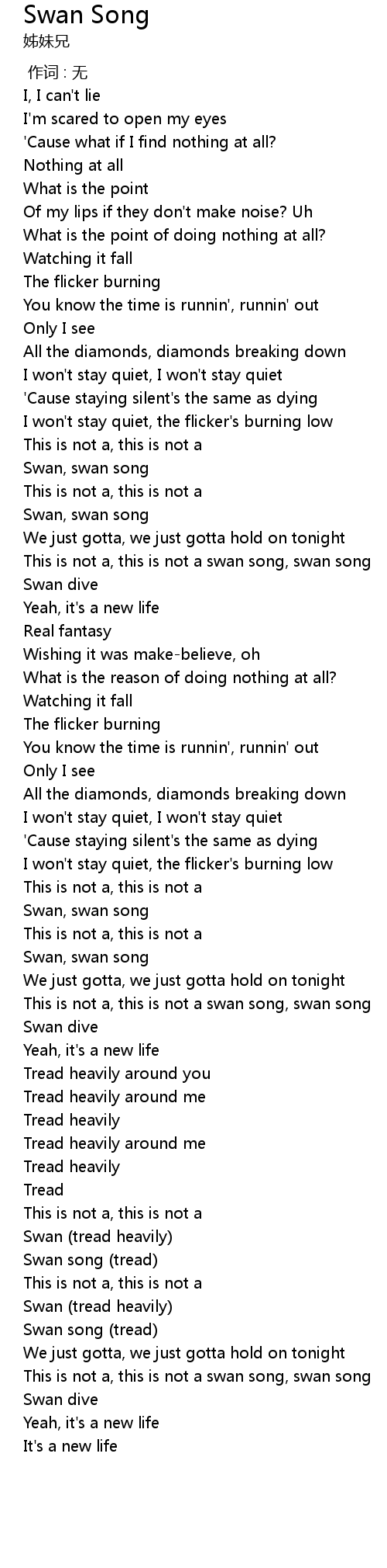 | [00:55.494] | Swan, swan song |