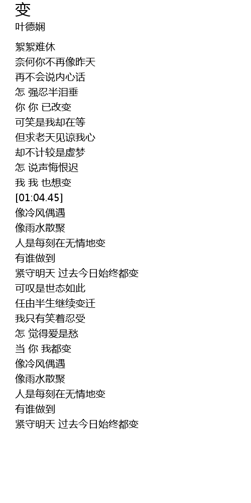 | [00:30.45] | nǐ nǐ yǐ gǎi biàn |