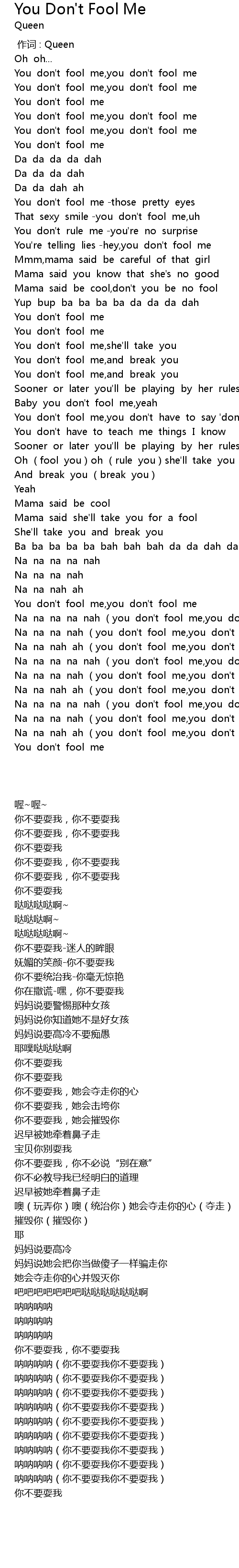 | [05:14.217] | Na na nah ah (you don't fool me,you don't fool me) |