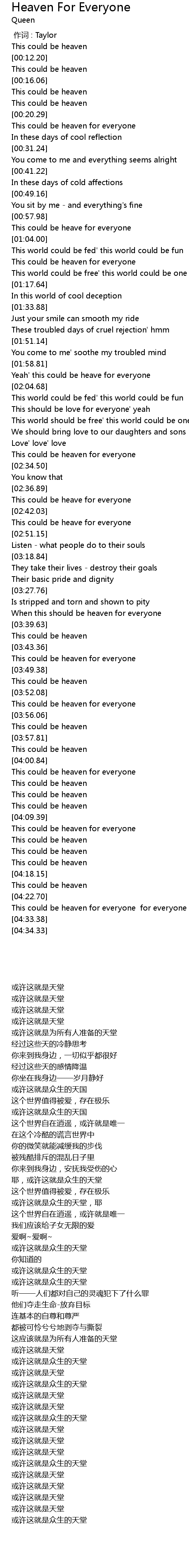 | [04:25.08] | This could be heaven for everyone for everyone |