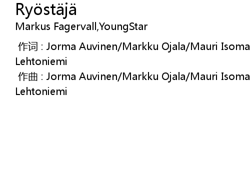 | [00:00.000] | zuò cí : Jorma Auvinen Markku Ojala Mauri Isomaa Rolf Berg Valde Lehtoniemi |