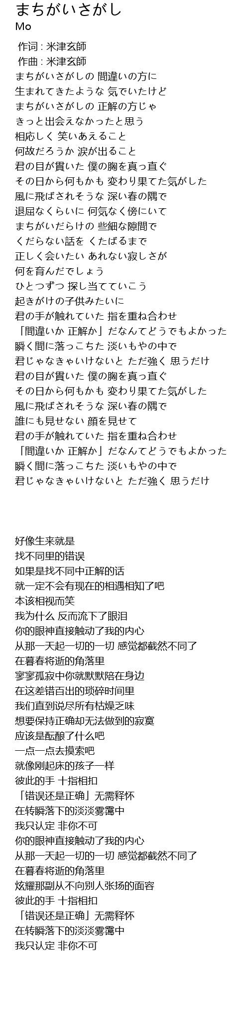 | [00:00.000] | 作词 : 米津玄師 |