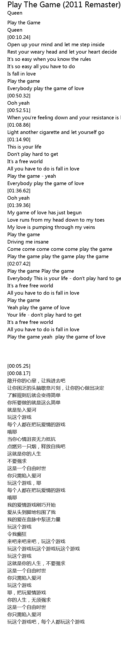 Play the game yeah play the game of love |