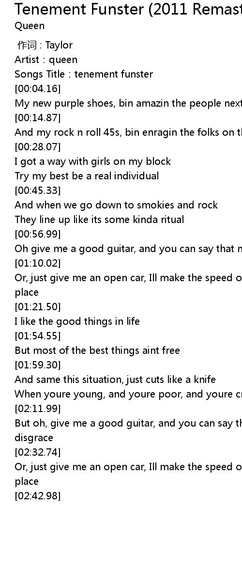 | [00:01.86] | Songs Title:tenement funster |