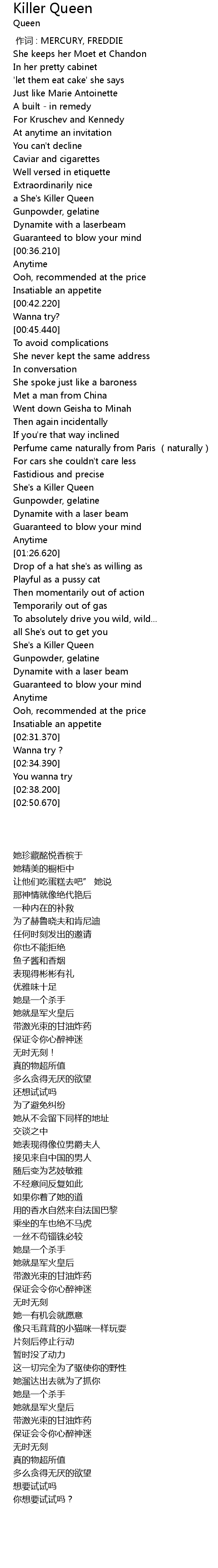 | [00:00.00] | 作词 : MERCURY, FREDDIE |