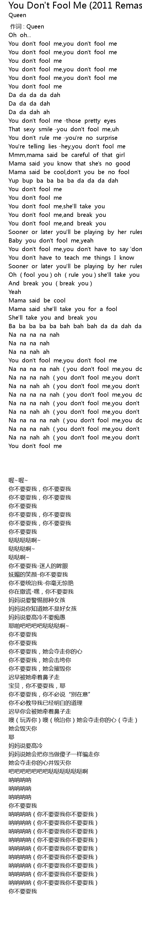 | [05:14.217] | Na na nah ah (you don't fool me,you don't fool me) |