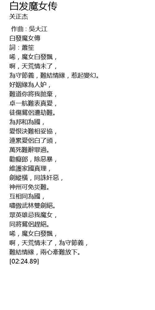 | [01:59.22] | xī, mó nǚ bái fā piāo, |