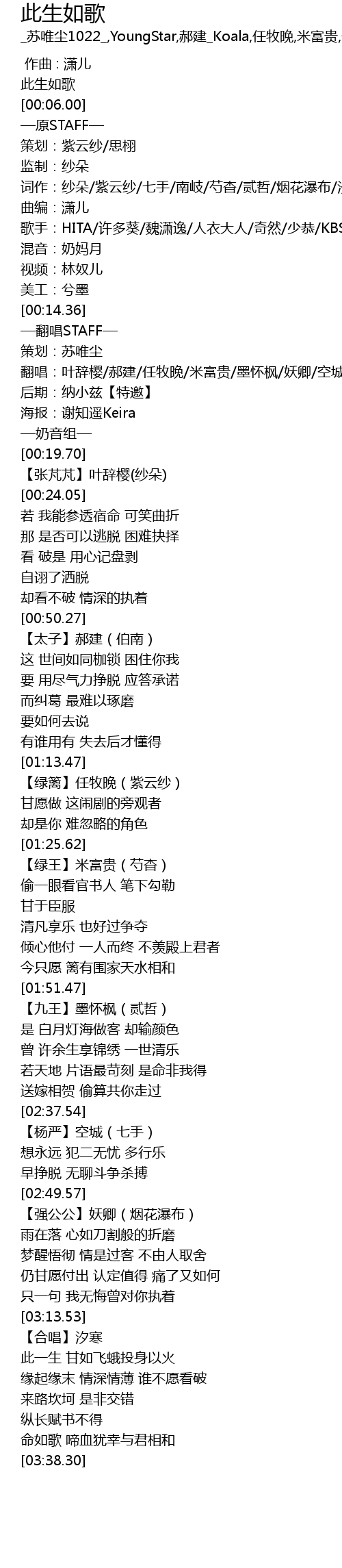 | [01:13.62] | 【绿篱】任牧晚(紫云纱) |