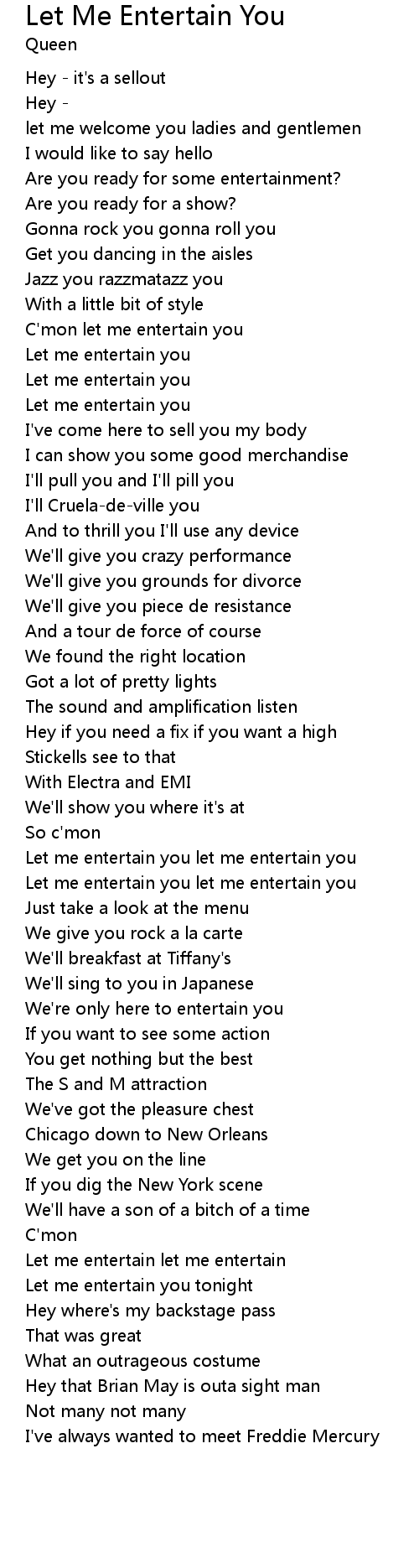 Let me entertain you let me entertain you |
