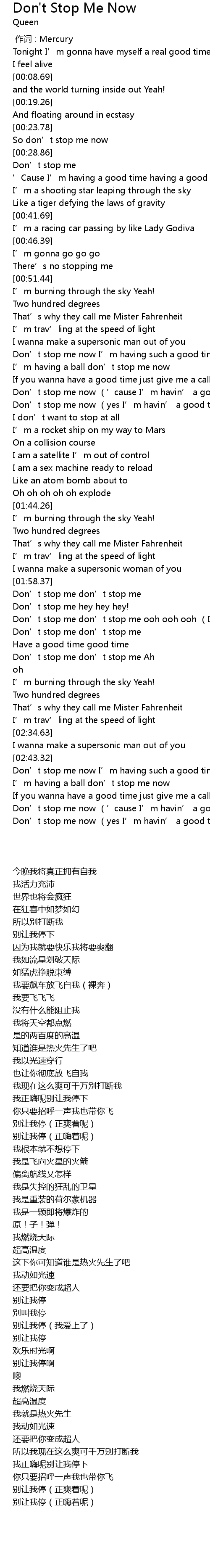 | [01:19.17] | Don’t stop me now (’cause I’m havin’ a good time) |