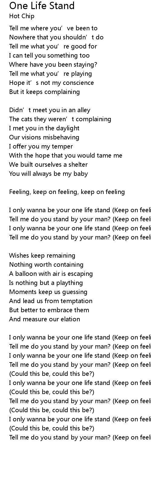 | I only wanna be your one life stand Keep on feeling | |