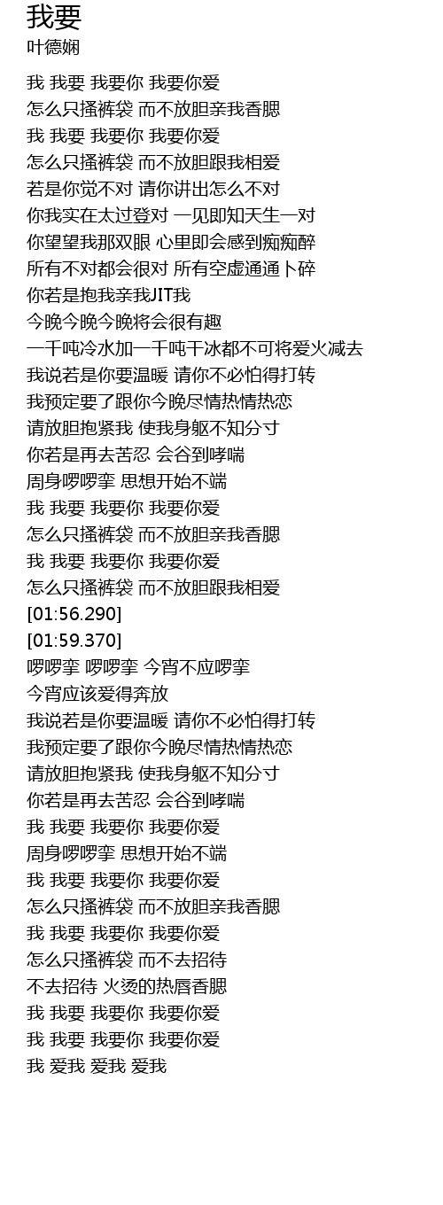 | [01:37.240] | 我 我要 我要你 我要你爱 |