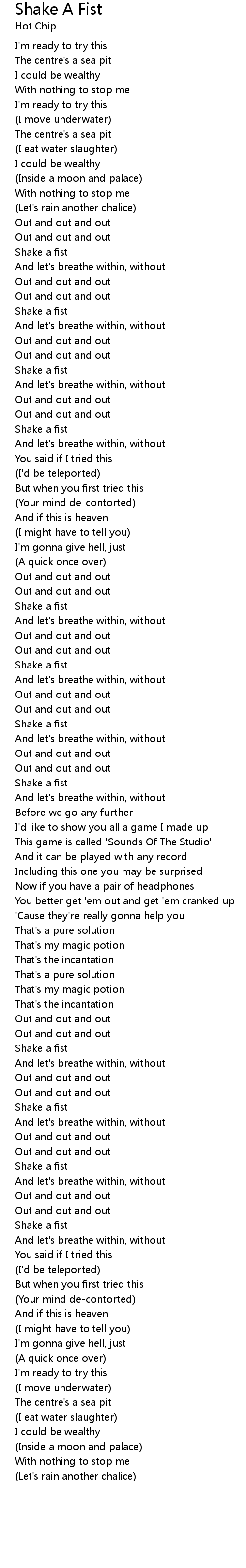 (Let's rain another chalice) |