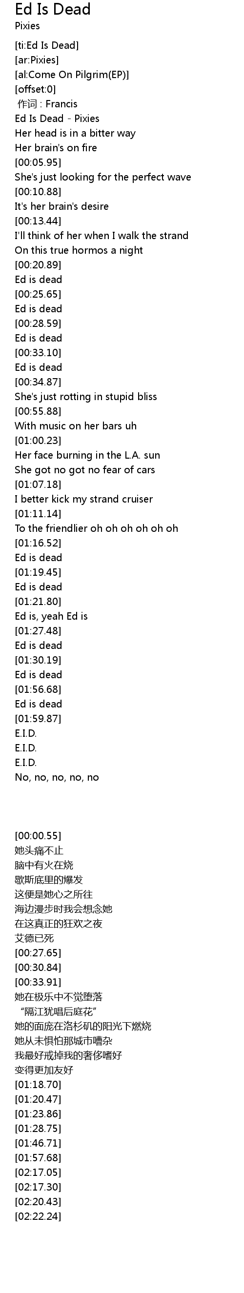 | [00:00.55] | Ed Is Dead - Pixies |